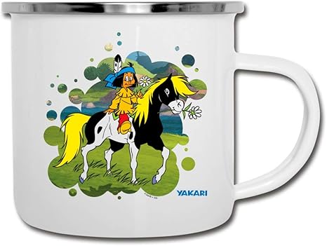 Amazon De Yakari Indianer Reitet Aus Auf Pferd Kleiner Donner Camping Becher Weiss