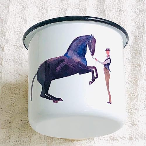 Emaille Tasse Mit Schwarzem Rand Reitkunst Camping Hiking Reitkunst Dressur Pferd Illustration Print Becher Tringefass Tasse Emaille Outdoor Outdoorlove Amazon De Handmade